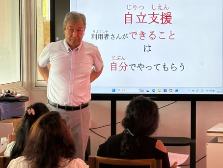 自立支援 介護過程の展開の理解はとても重要なポイントです。日本人指導者が通訳を交えて大事な内容を丁寧に伝えていきます。最初は難しくても絶対に伝わります。受講生の皆さんの真剣な眼差しはとても頼もしい限りです。